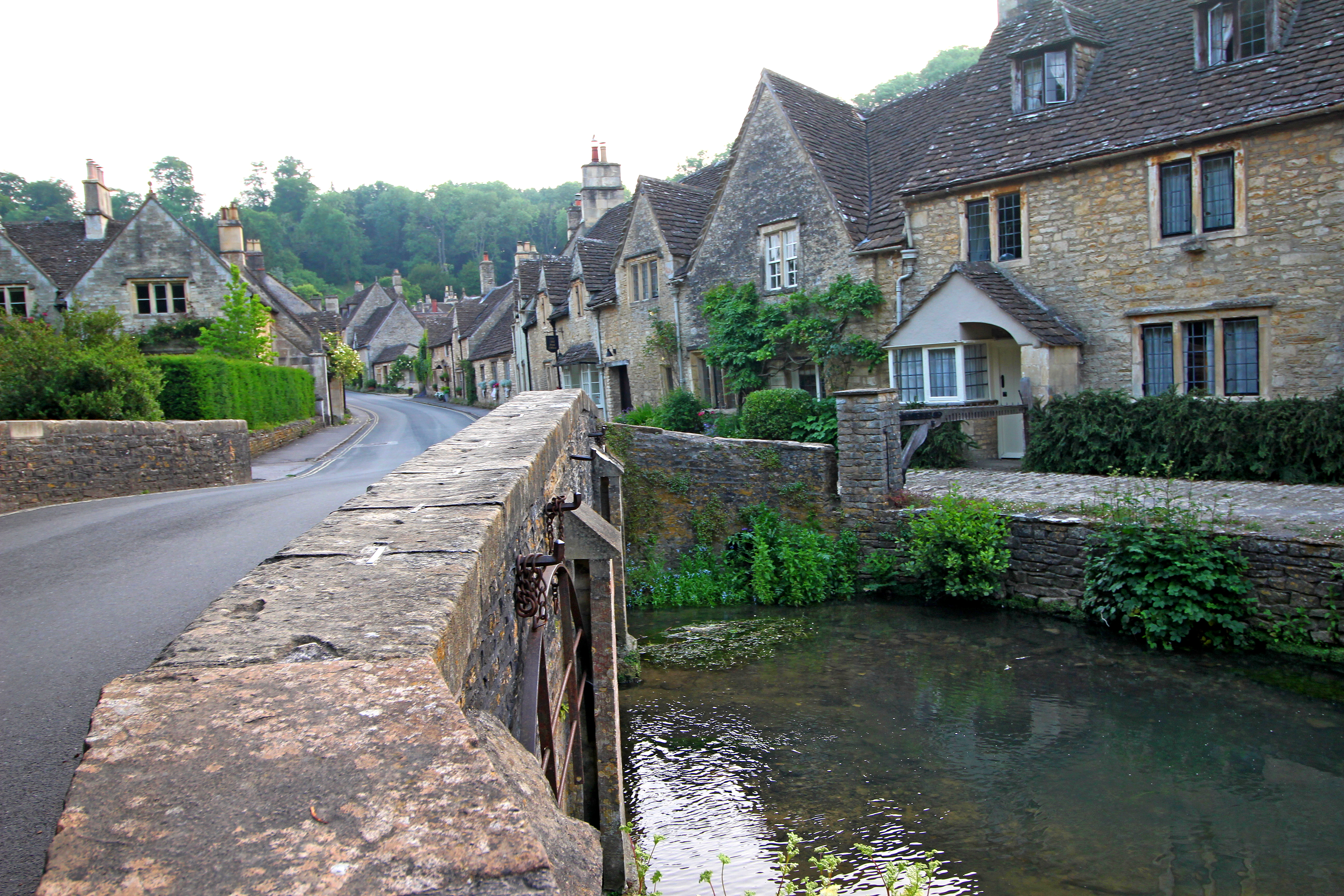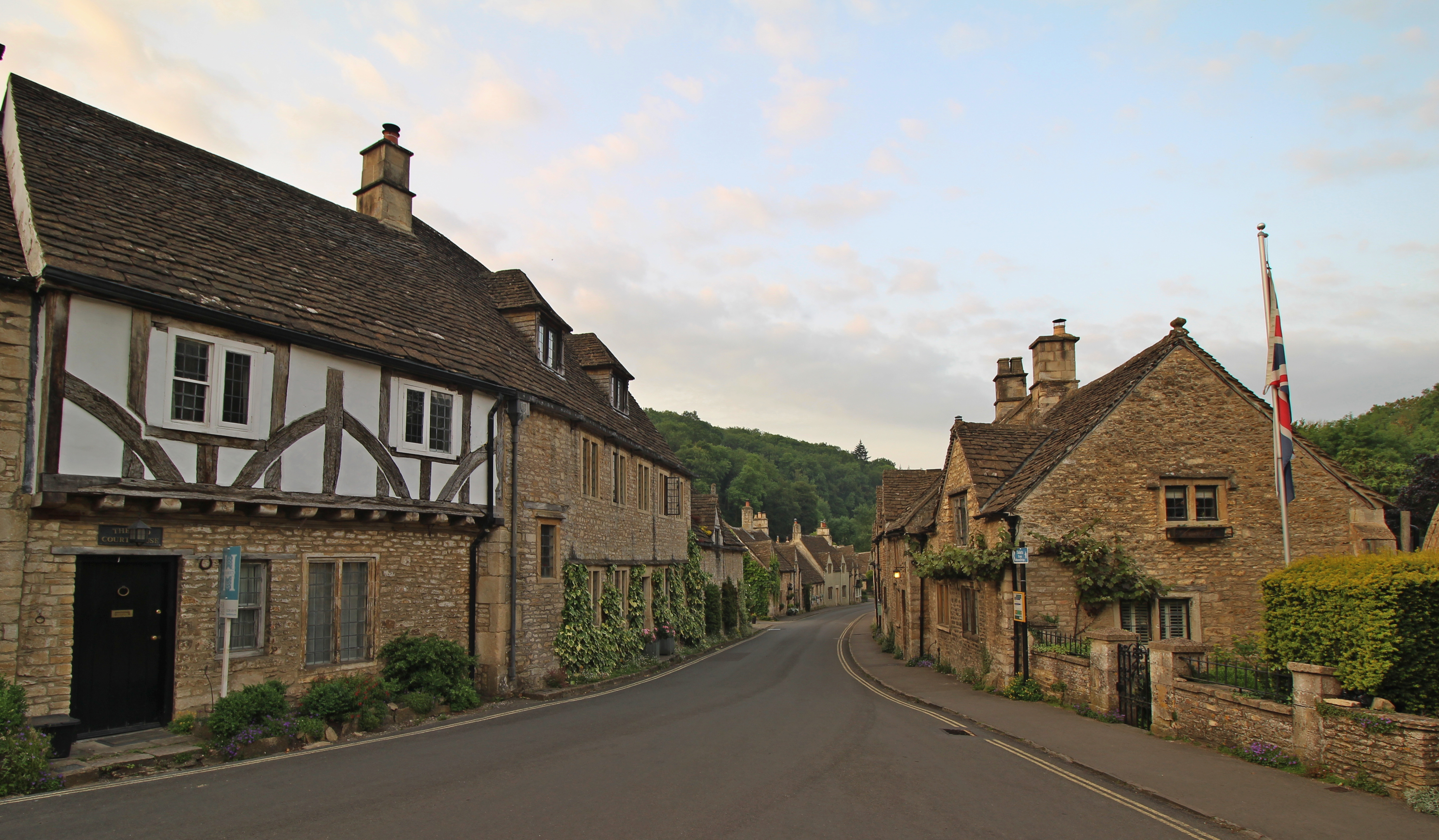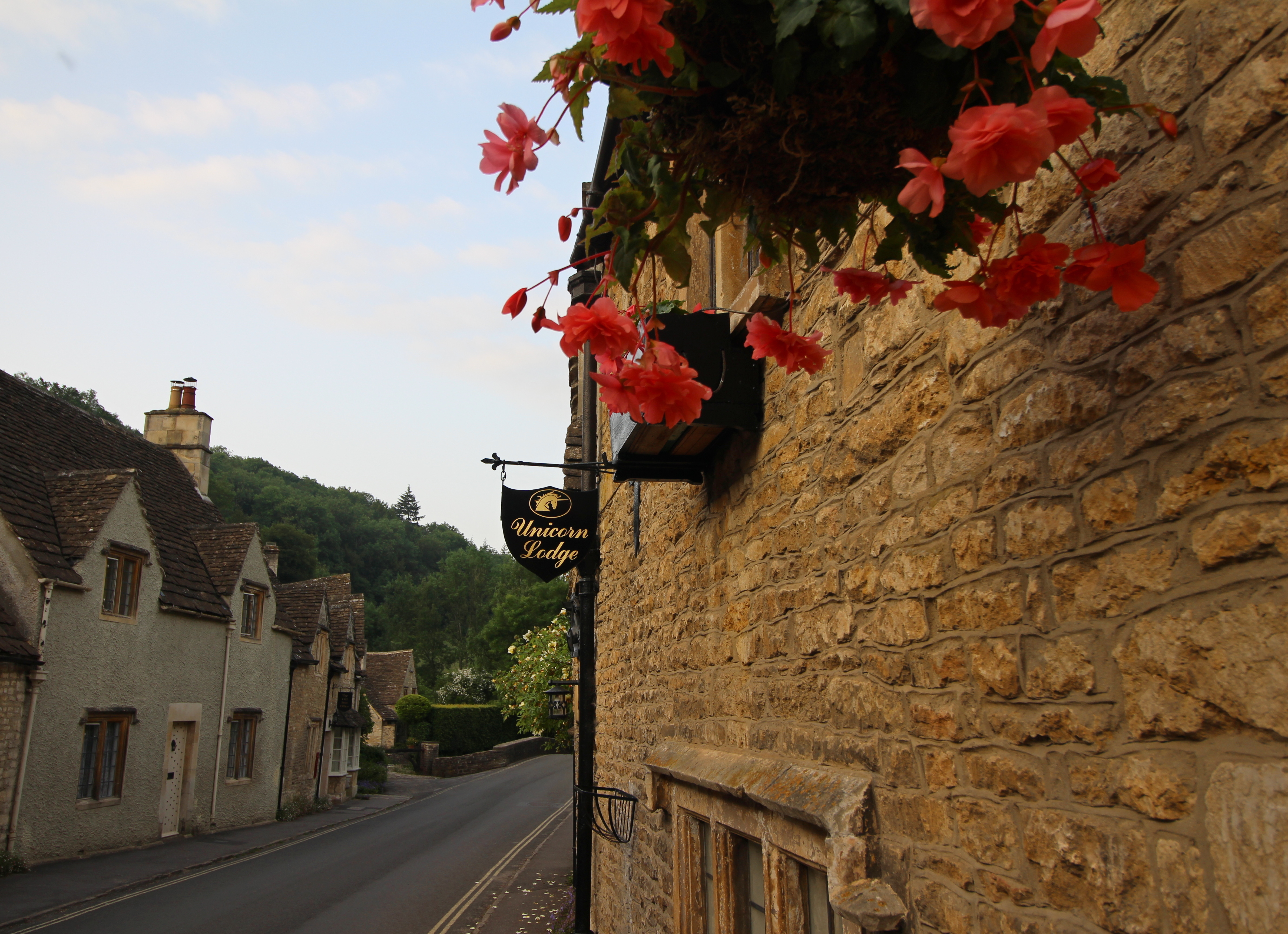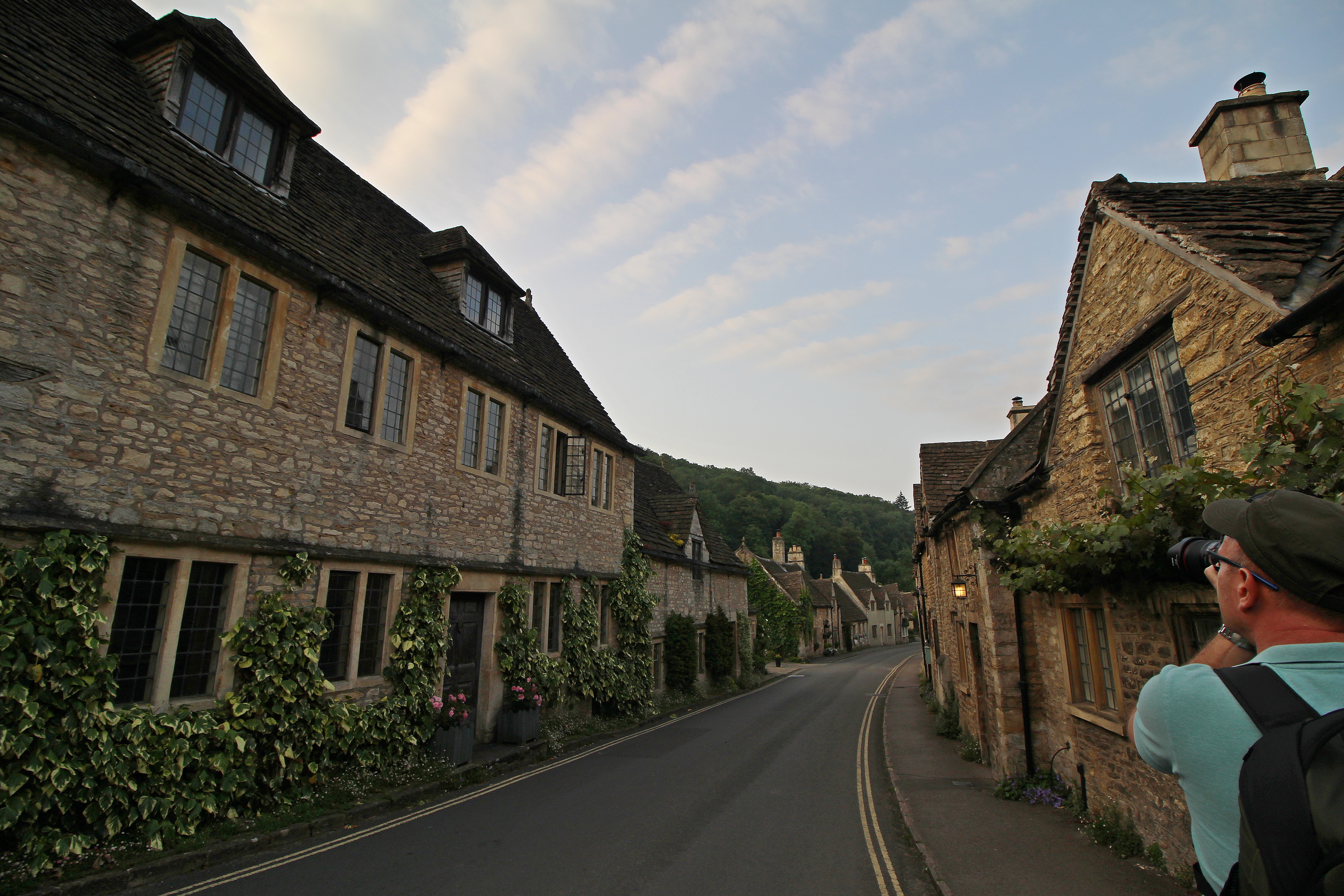 It’s 3 o’clock in the morning when the alarm goes off. Time for our first weekend adventure! Off to explore and snap two little towns: Castle Combe and Lacock. We need to be there by sunrise, which is at 4:50 AM. On our way there my husband comments that it looks a bit misty and, although there isn’t much sun when we arrive in Castle Combe, the whole look and feel of the little streets with their beautiful old cottages still makes it all worthwhile. We are the only people around so early on a Saturday morning (except for the milkman delivering glass bottles of milk in front of all the small, colourful doors).
