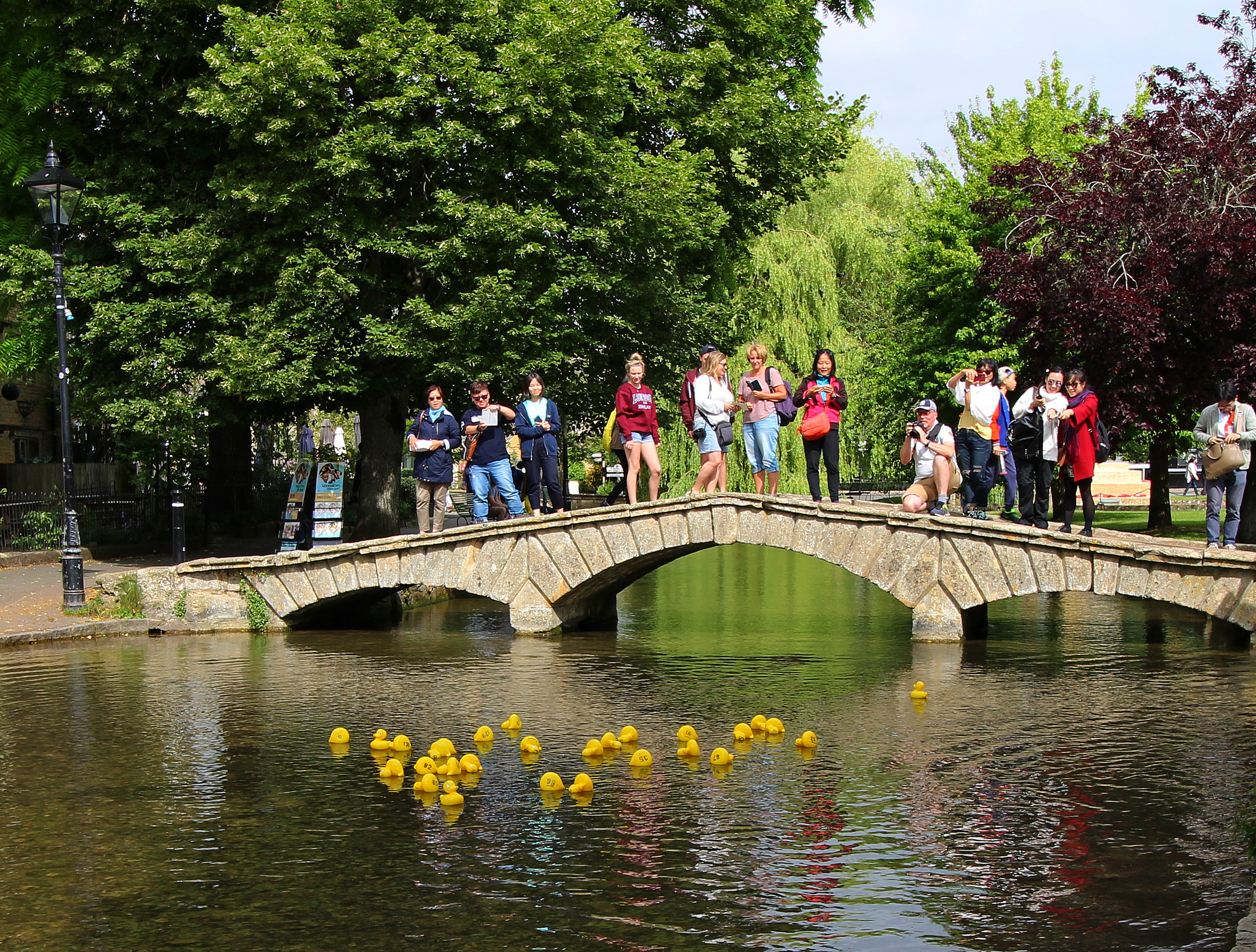 Our first stop is Bourton-on-the-Water. Fondly known as the ‘Venice of the Cotswolds’, it is a village that sits on either side of the River Windrush and is known for its low bridges and traditional stone houses. We enjoy a tasty breakfast and wonderful coffee. My husband got a gluten-free full English breakfast specially made for him at The Croft restaurant right next to the River Windrush. On the opposite side of the river we see an assortment of yellow rubber duckies on a table and rush over to see what all the fuss is about… there is going to be a duck race!