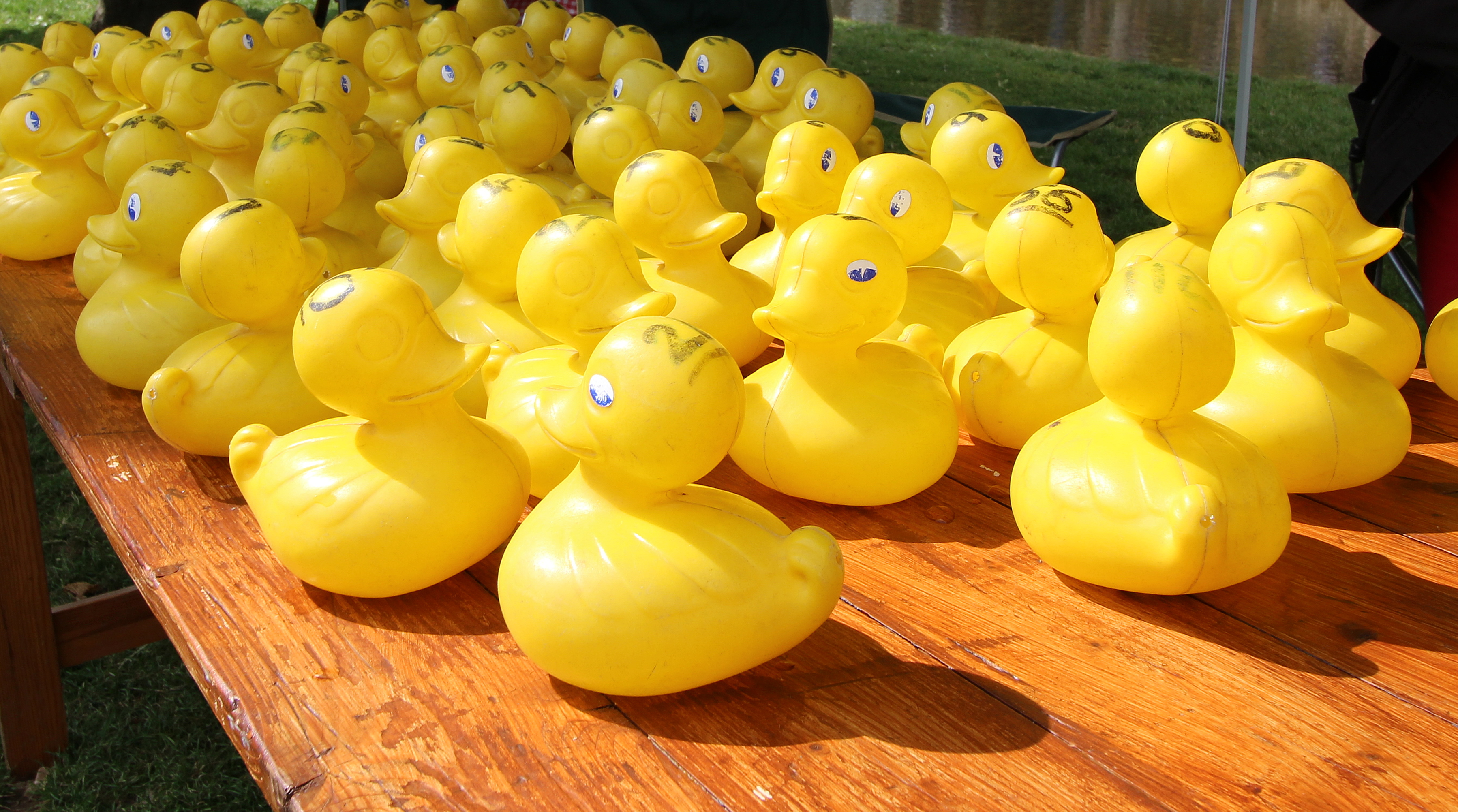 Each duck has a number and for 1 pound you can ‘buy’ one. All the sold ducks then go into a black crate and at precisely 10 o’clock the referee throws the whole lot into the river and off they go… and the winning number was… 100!