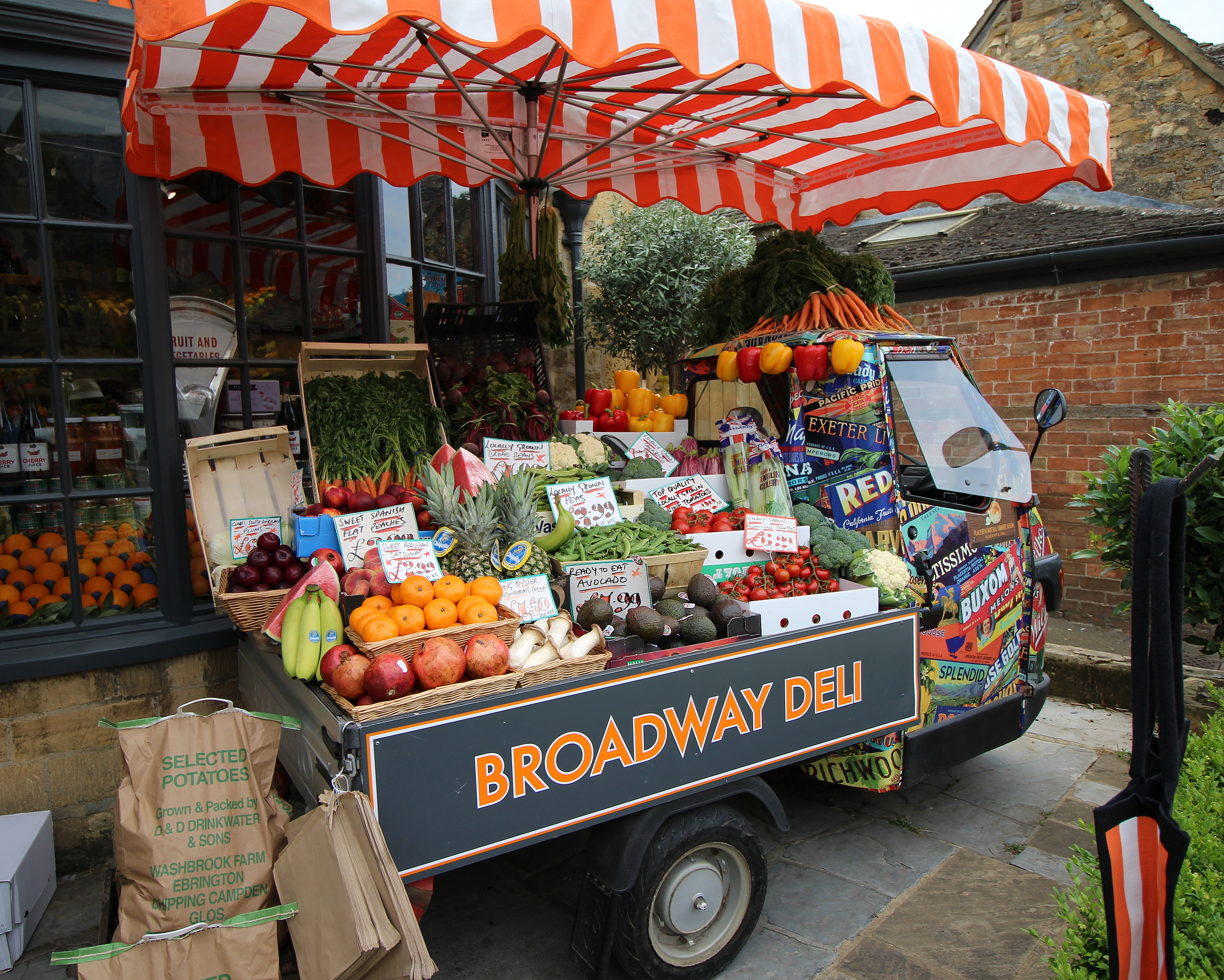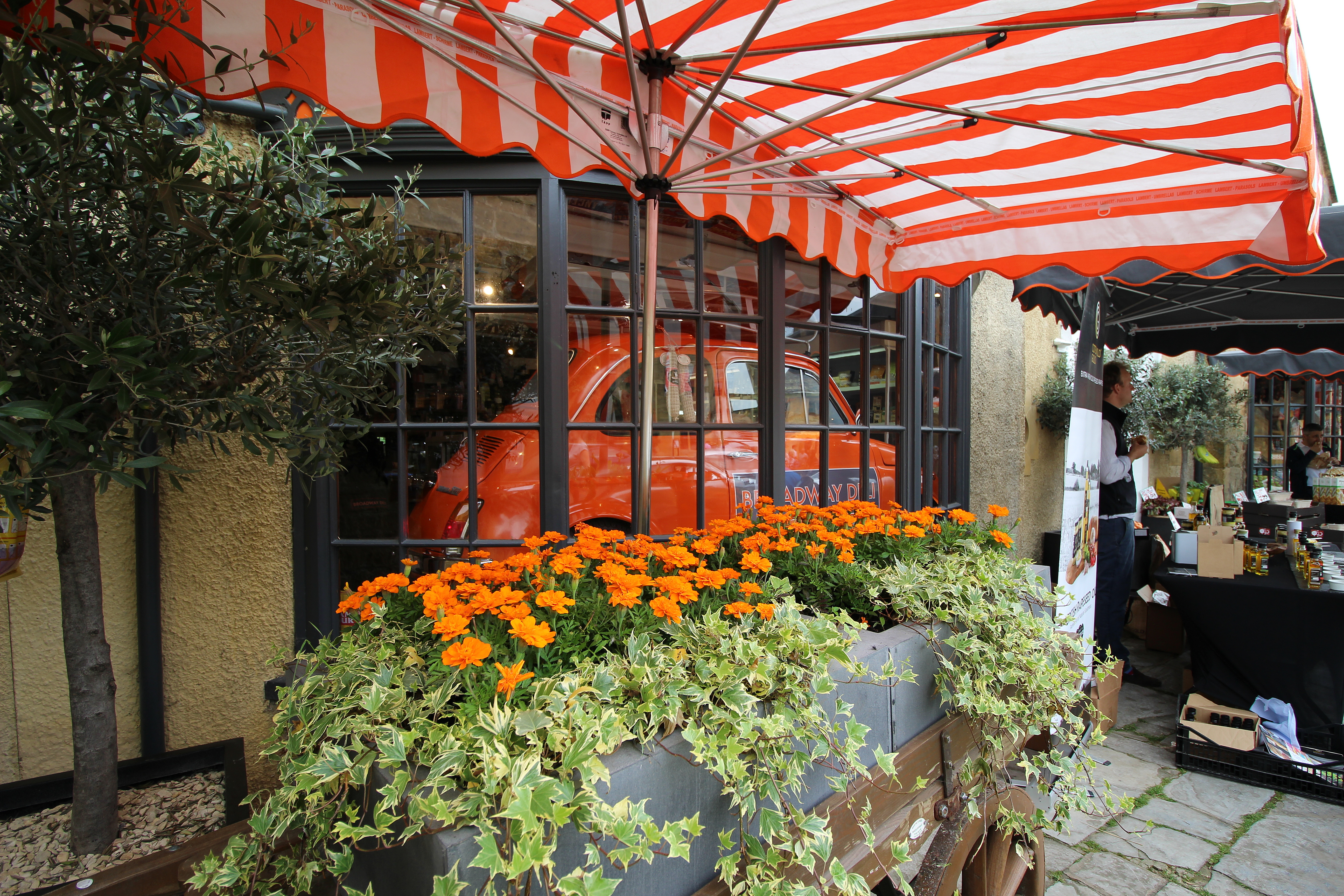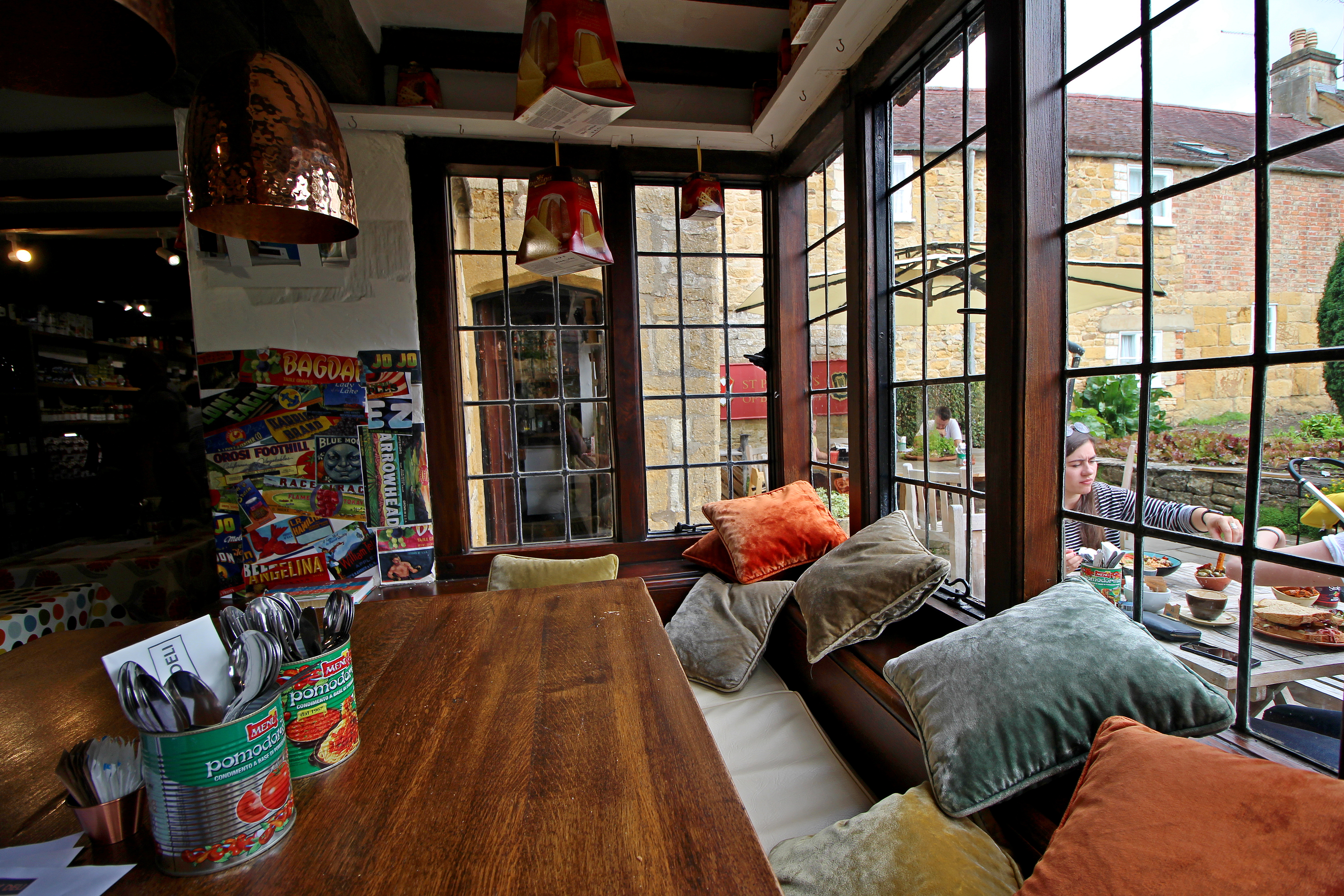 The Broadway Deli is a lovely delicatessen full of excitement and is just beautifully colourful. It is a must-visit destination if you go to Broadway. This deli/cafe is a mecca for gourmet food–you could spend hours browsing the shop before you dine. I had walnut coffee cake that was delicious, while my husband could enjoy a moist gluten-free chocolate brownie with some of the best coffee in the Cotswolds.