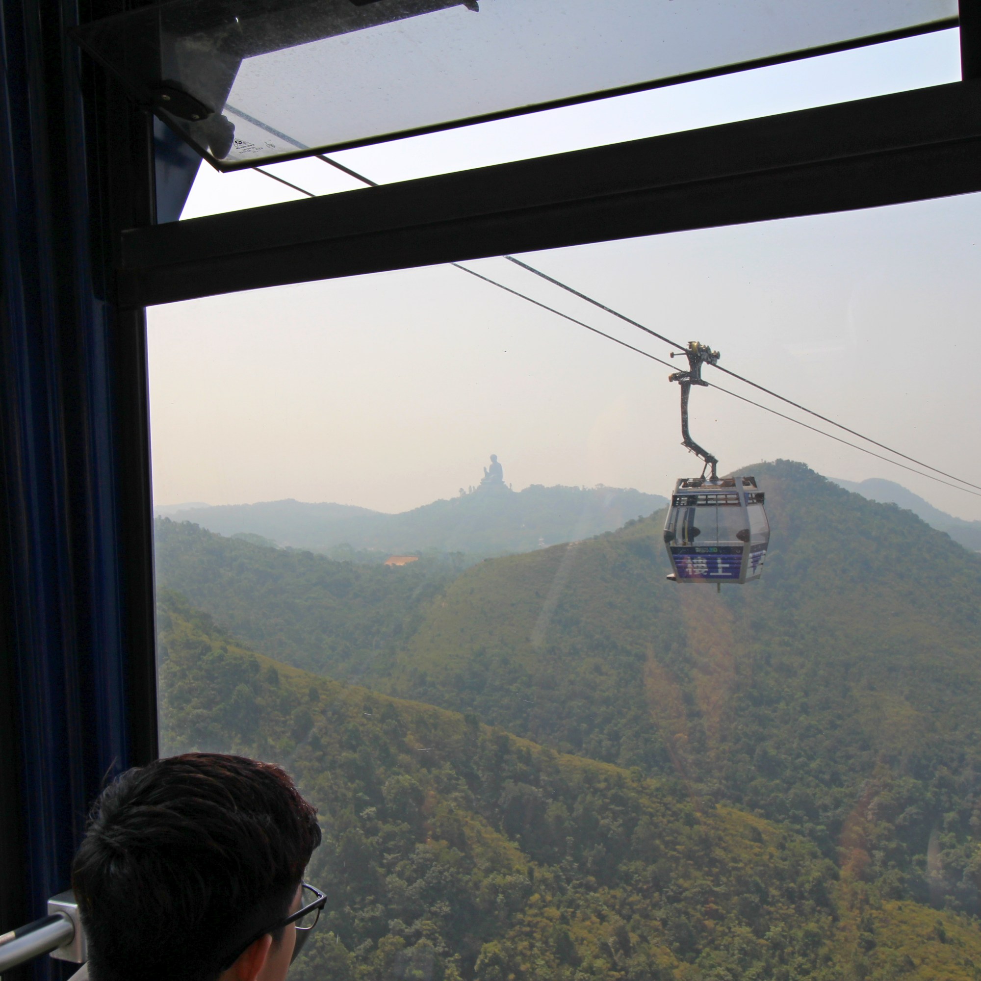 Monday morning, and we take the MTR from Ngau Tau Kok to Tung Chung station. We were on our way to see The Big Buddha and decided the most thrilling route would be to go via the Ngong Ping Cable Car. The 25 minute ride connects Tung Chung to Ngong Ping to give you a glimpse of the beautiful scenery of Lantau Island. And of course, you also get a sneak preview of the 24 meter high Buddha, which has some difficulty hiding!
