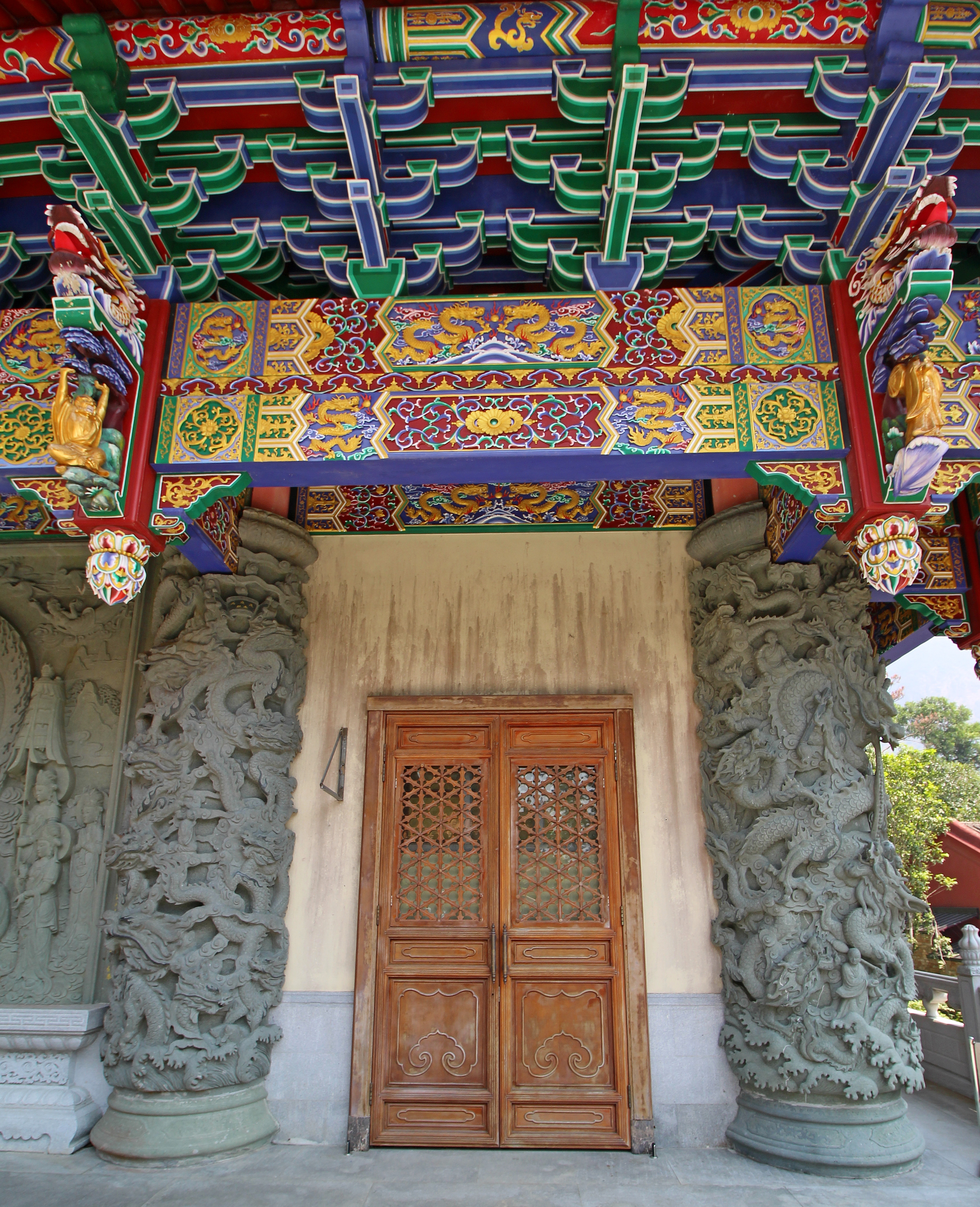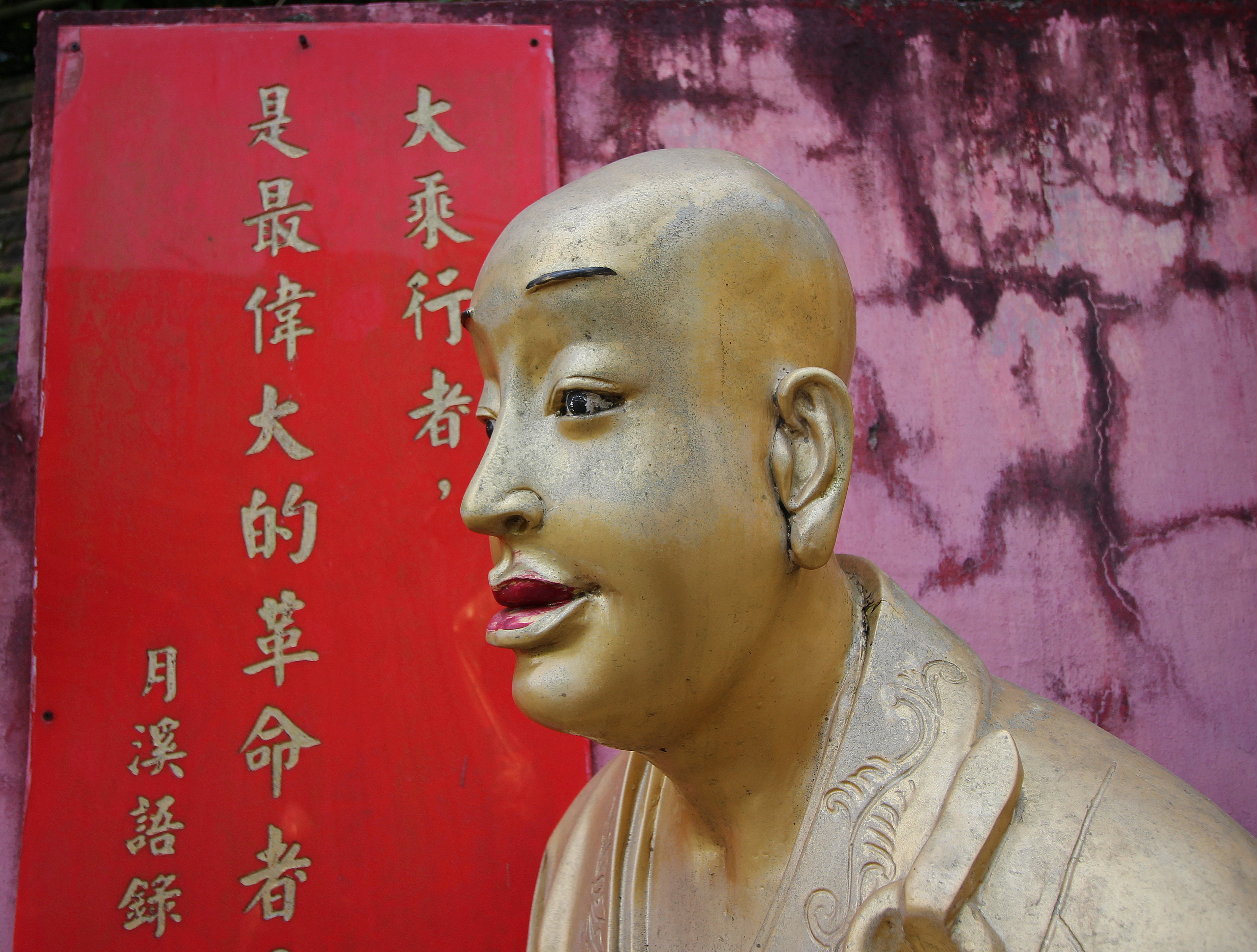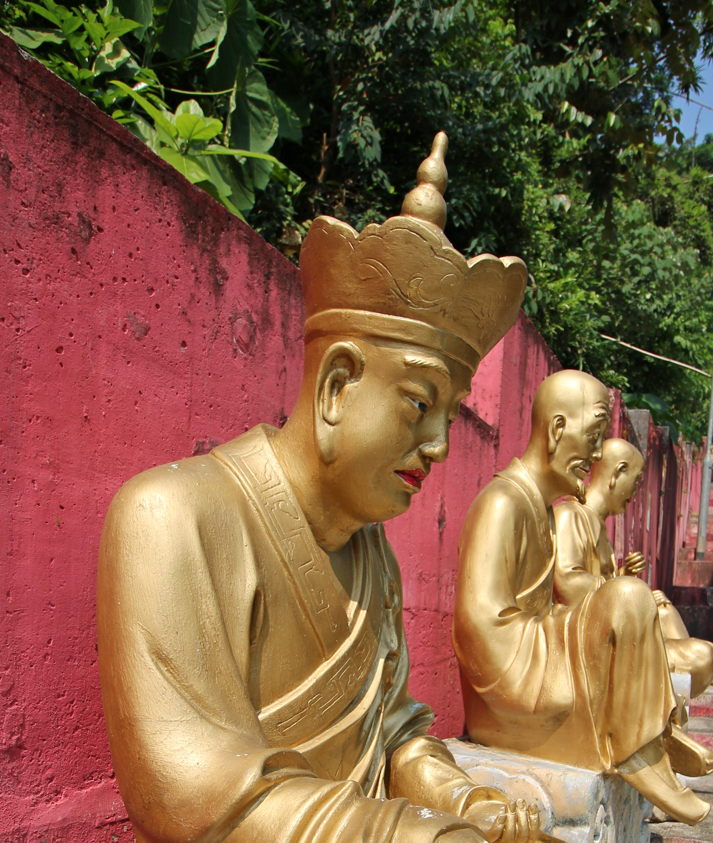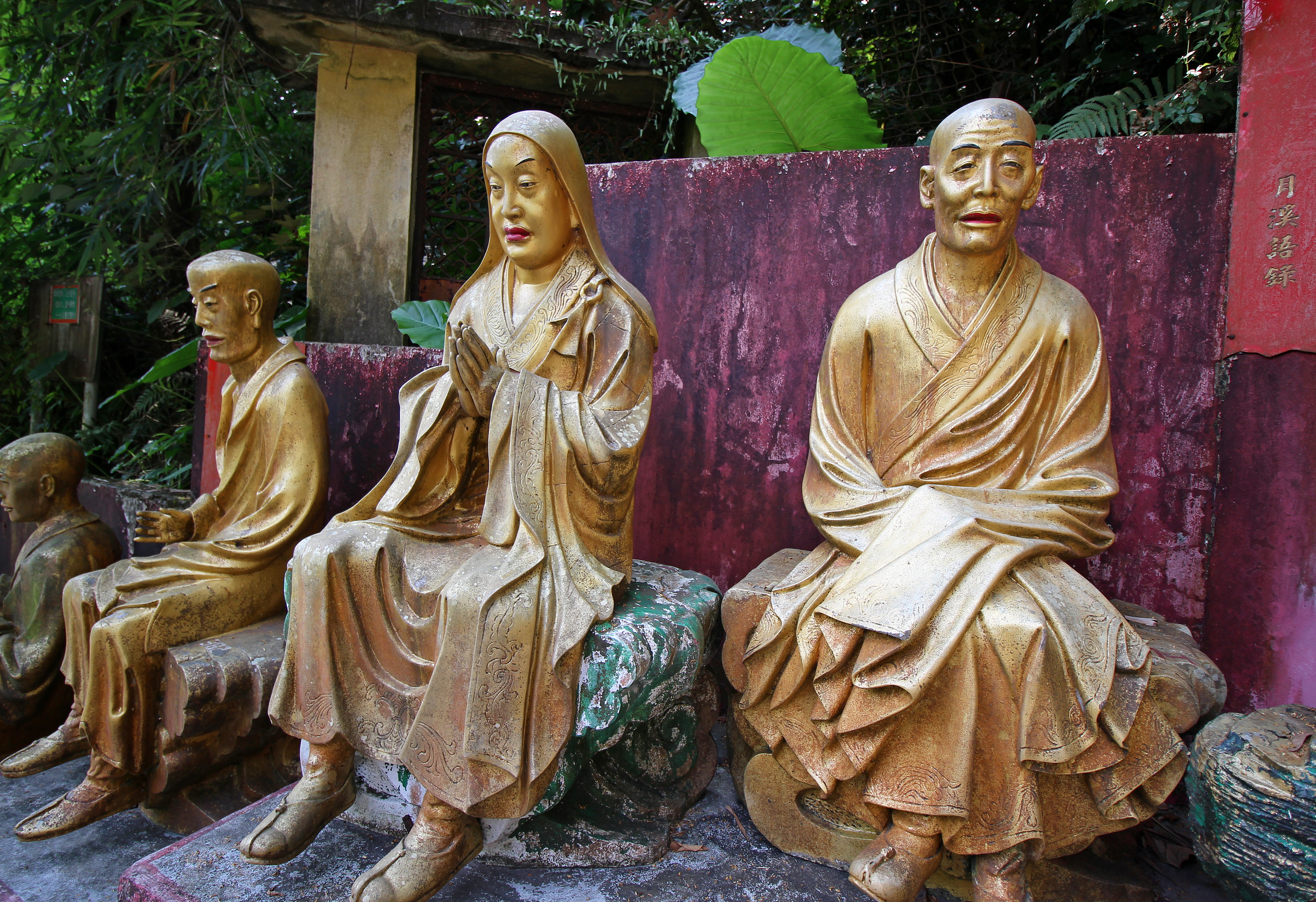 The elevated outdoor bronze Buddha sits formerly atop the peak of Mount Muk Yue. The size of it makes this an interesting sight. It was cast with 250 tonnes of bronze and built over 12 years. At the level just below the main statue, there are 6 smaller statues of Devas offering flowers, incense, a lamp, ointment, fruit, and music to the Buddha.