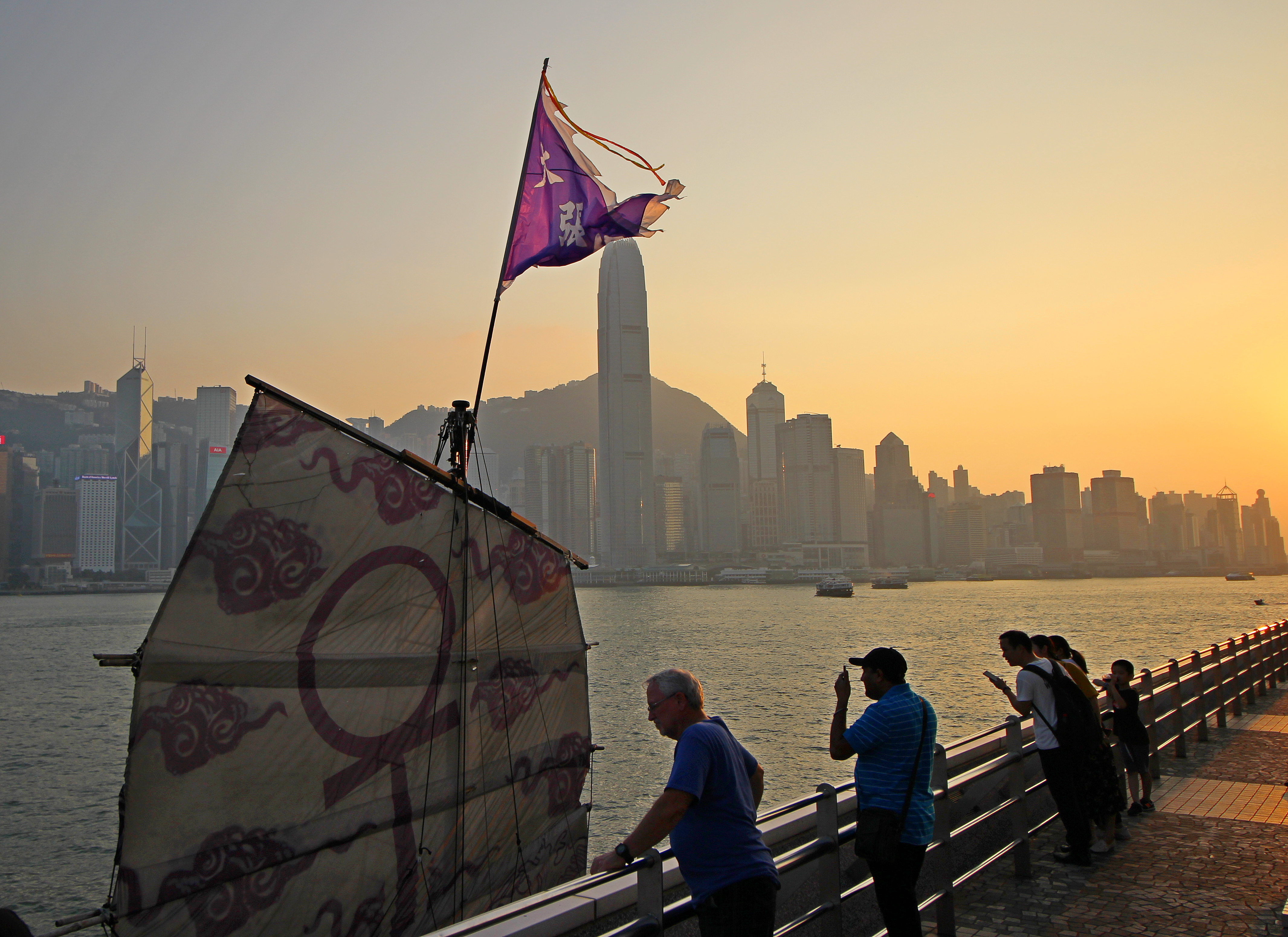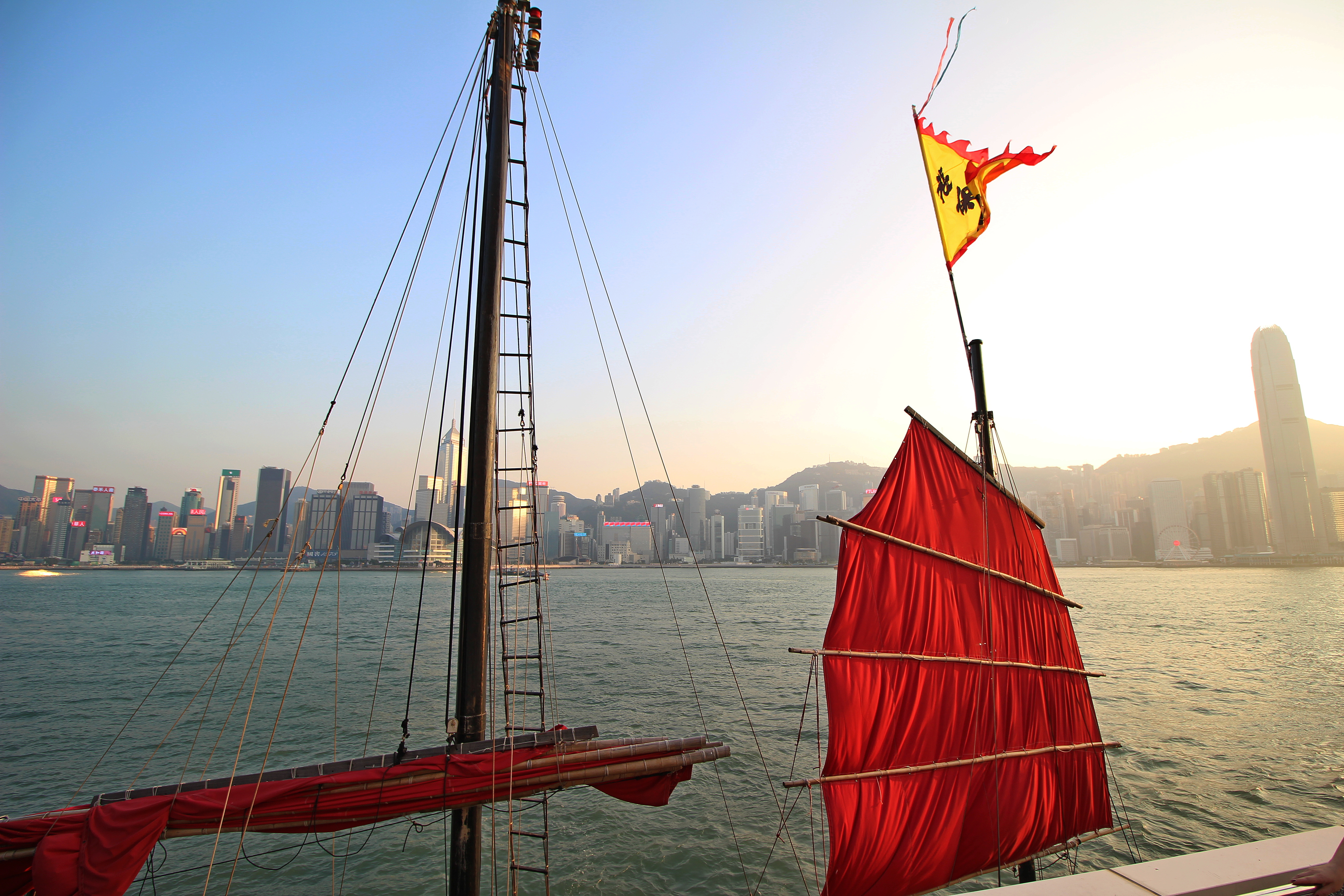 You can opt for a sunset cruise in the harbor, in an authentic (looking) Chinese junk. We stayed on the Kowloon side – enjoying the view of these junks, which with their red sails introduced a spectacular contrast against the glass and steel backdrop.
