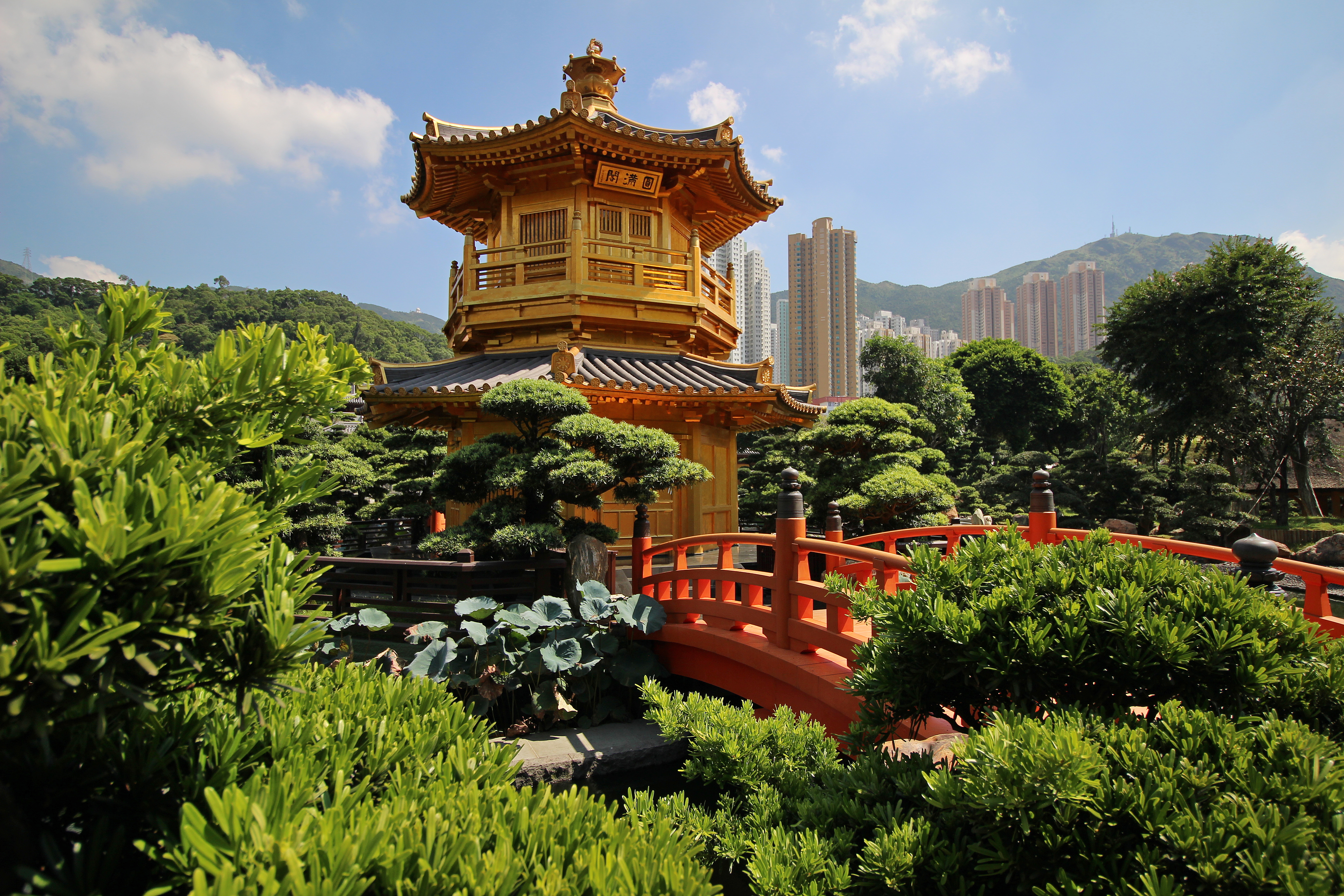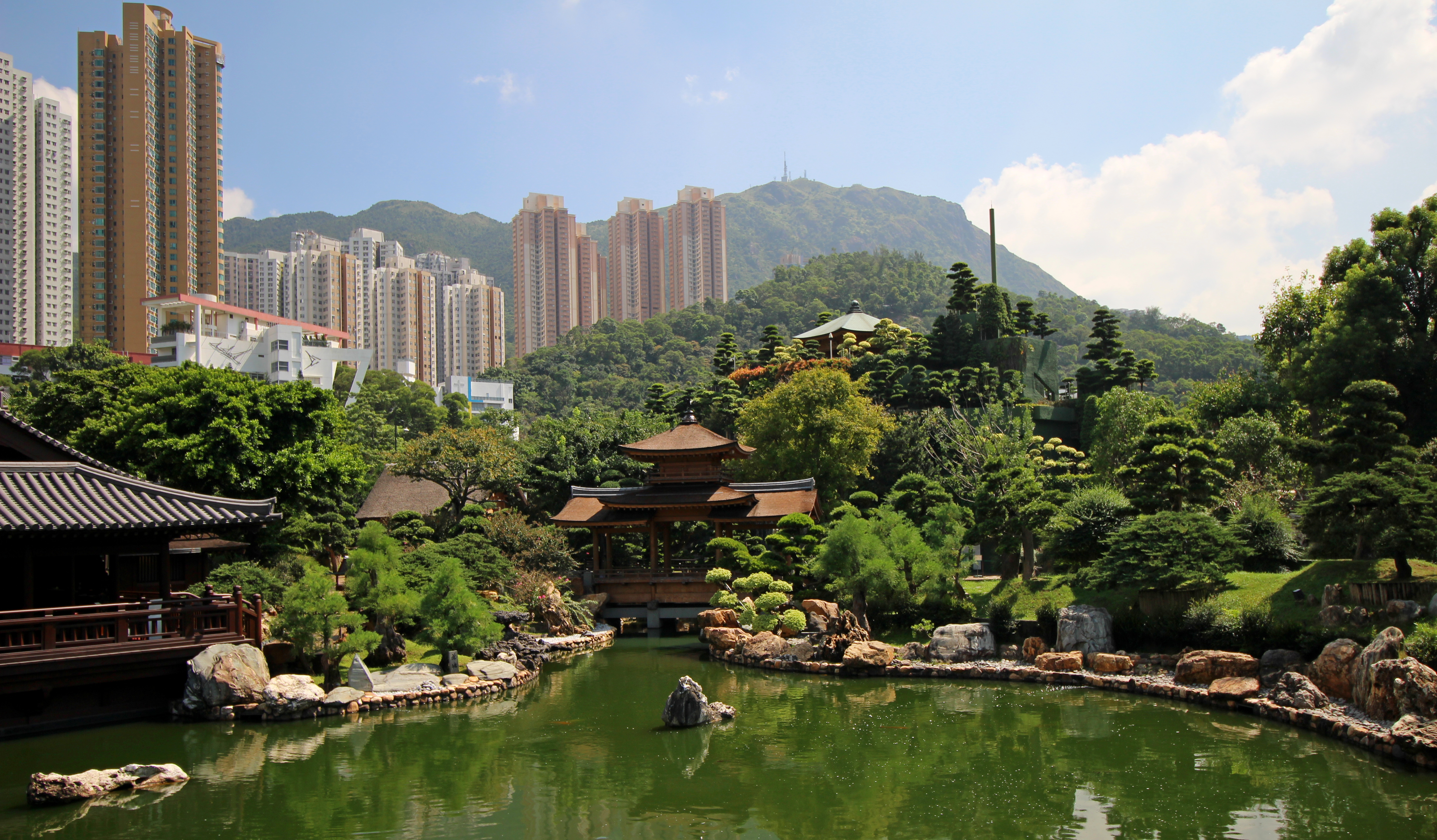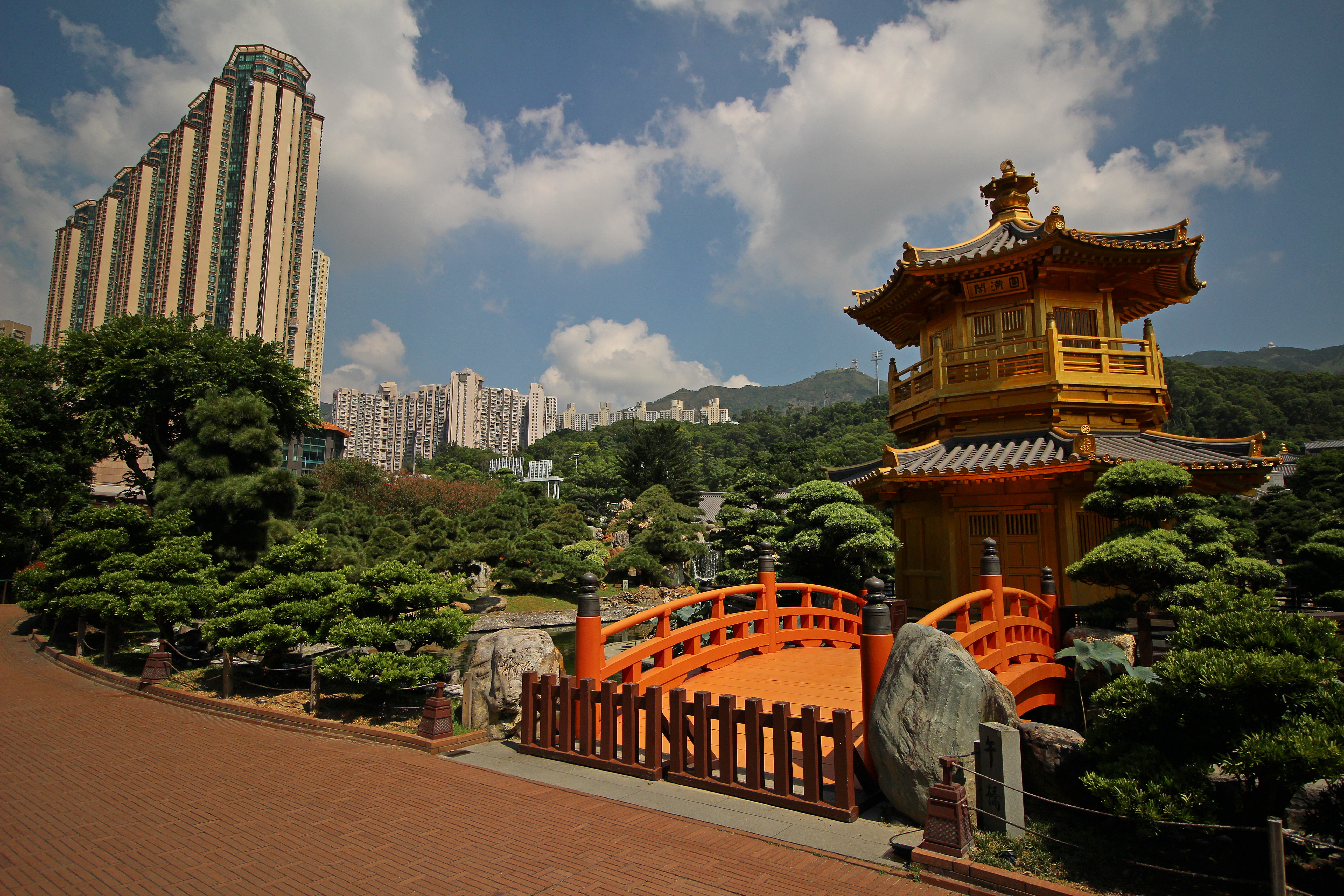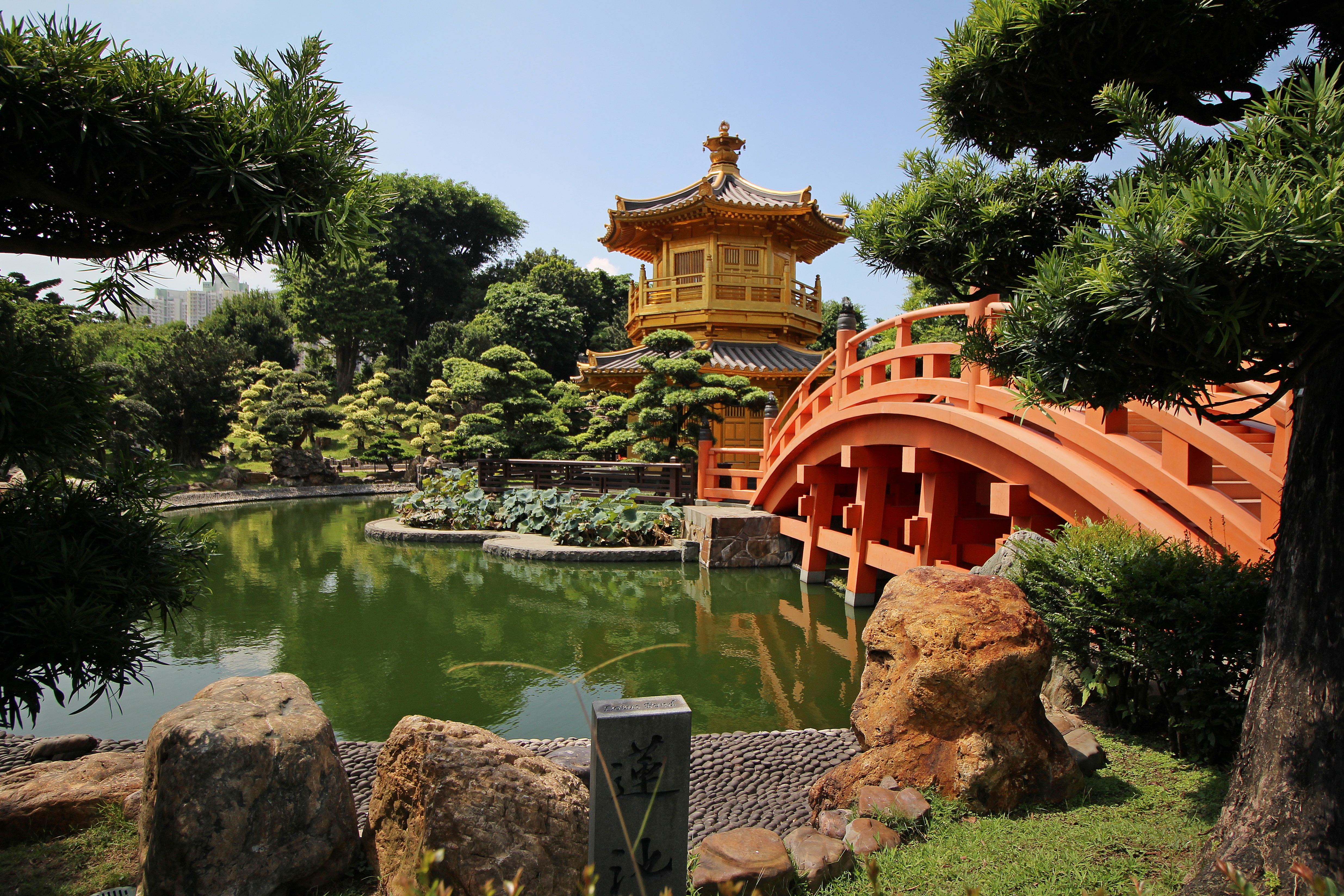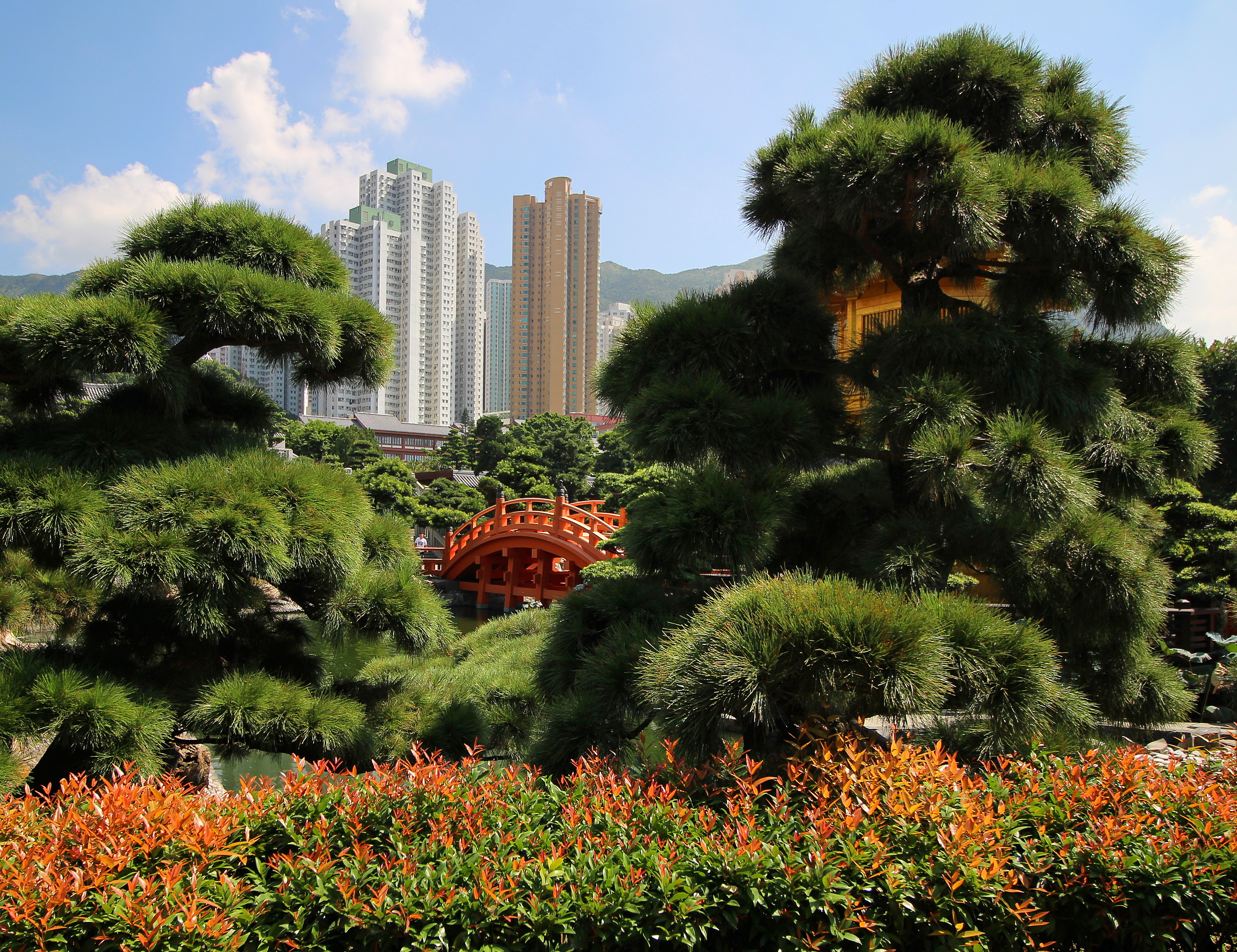 Thursday morning we visited the Nan Lian Garden in the Diamond Hill neighborhood of Kowloon. It felt awkwardly blissful to enter this quiet place in the middle of all the high skyscrapers. This serene oasis in the middle of the city is fascinating and you can wander around and enjoy the marvelous rocks and perfectly shaped topiary trees. There are ponds with koi and the most stunning orange wooden bridges that lead to a wooden structure situated in the middle of the lotus pond – this is the Pavilion of Absolute Perfection.