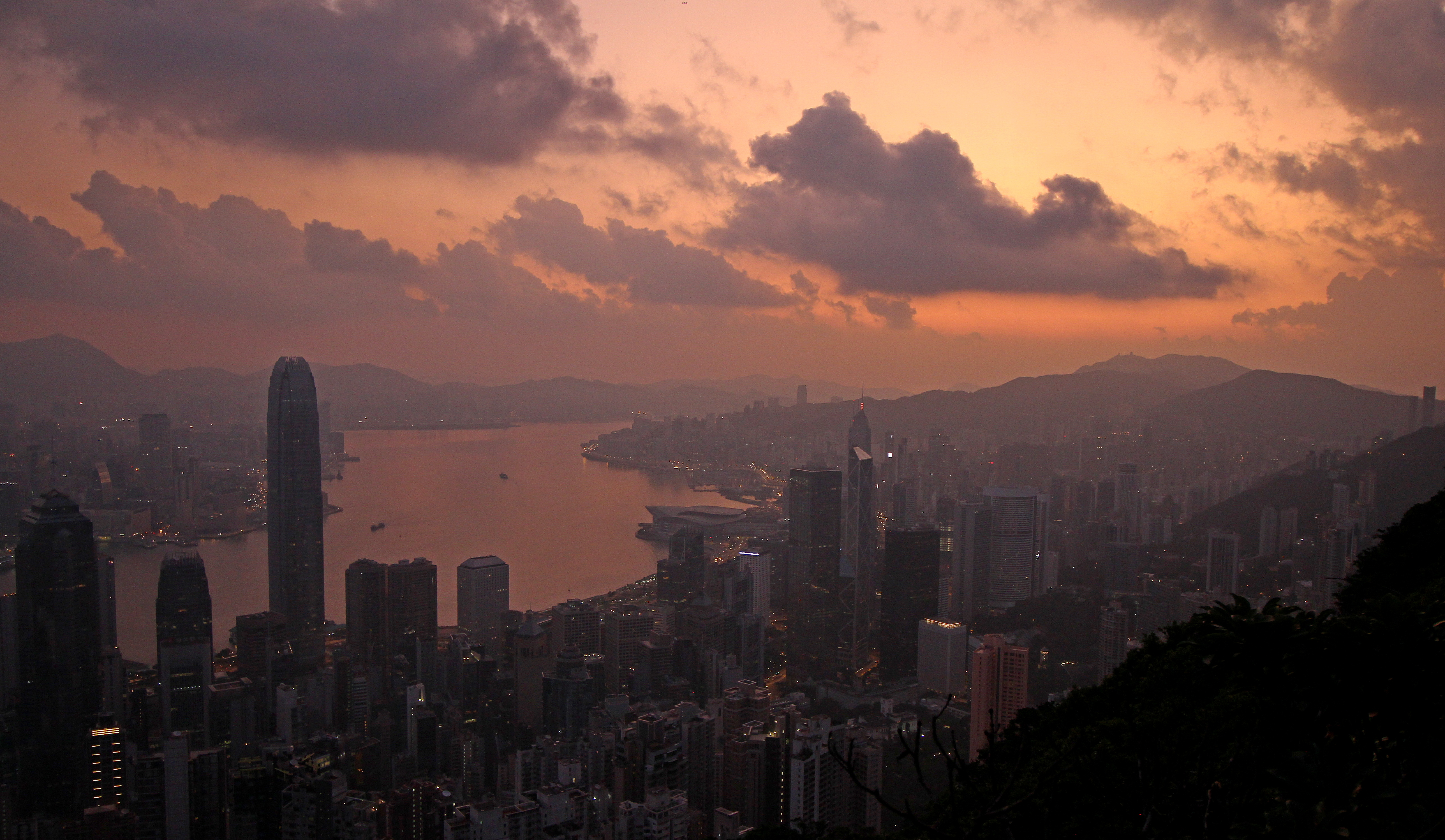 Friday morning we got up at 3:45 to take an Uber up to Victoria peak. Jaco read about the perfect place for a sunrise photo. You have to take a 15 to 20 minute walk down Lugard Road, where you can capture the full view of Victoria Harbour. I have to say it was worth the trouble – the changing of the water and cloud colors as the sun rose and the ‘waking up’ of the whole city was just beautiful.
